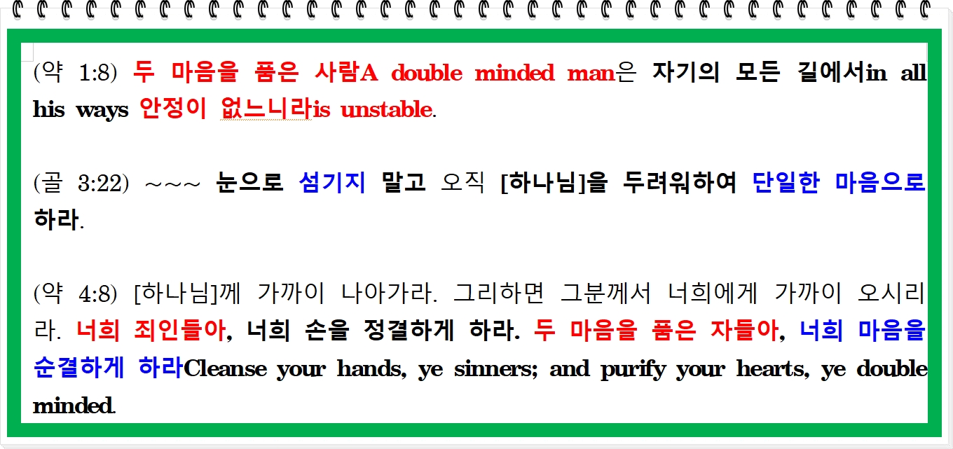 (왕상 11:4/6/9) 솔로몬이 늙었을 때에 ~~~ 그의 마음이 그의 아버지 다윗의 마음과 같지 아니하여 ~~~ 완전하지 아니하였으니 / 6 ~~~ {주}의 눈앞에서 악을 행하고 자기 아버지 다윗이 전적으로 {주}를 따른 것같이 따르지 아니하며 / 9 ¶ 솔로몬의 마음이 돌아서서 {주} 이스라엘의 [하나님]을 떠났으므로 {주}께서 그에게 분노하시니라. 그분께서 전에 두 번 그에게 나타나시고