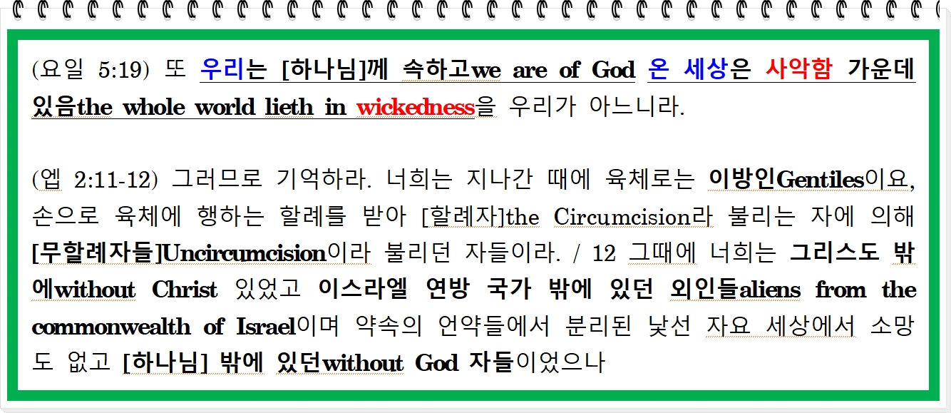 (고전 10:32) ① 유대인들the Jews에게나 ② 이방인들the Gentiles에게나 ③ [하나님]의 교회the church of God에나 어떤 실족거리도 주지 말되