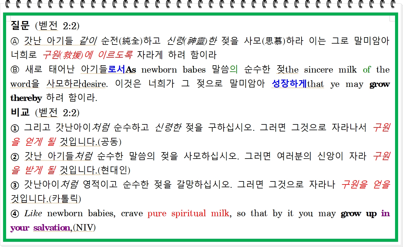 (빌 2:12) 그러므로 나의 사랑하는 자들아, 너희가 항상 순종한 것 같이 내가 있을 때뿐 아니라 지금 내가 없을 때에도 더욱더 순종하여 두려움과 떨림으로 너희 자신의 구원을 일하여 드러내라work out your own salvation.
