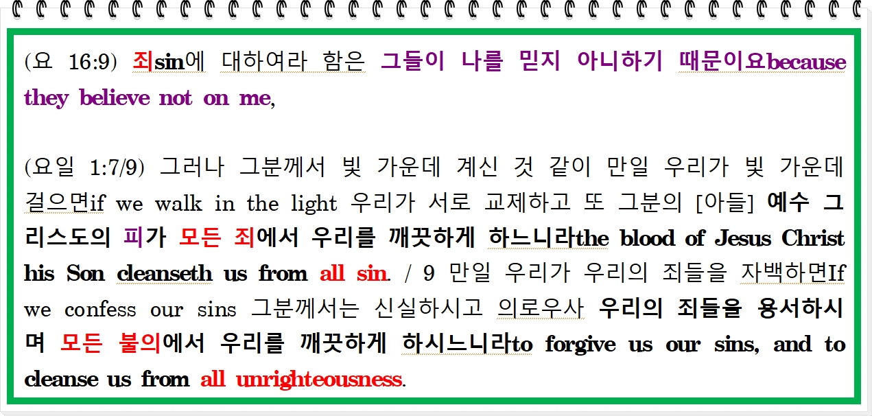 (요일 5:17) 모든 불의가 죄로되All unrighteousness is sin 사망에 이르지 아니하는 죄가 있느니라.