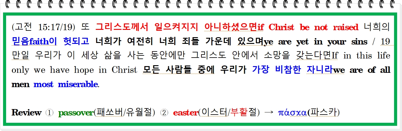 (고전 15:20) 그러나 이제 그리스도Christ께서 죽은 자들로부터 일어나사risen from the dead 잠든 자들의 첫 열매firstfruits가 되셨도다.