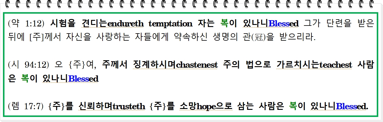 (눅 11:28) 그분께서 이르시되, 그러하다. 그러나 [하나님]의 말씀을 듣고 그것을 지키는 자들이 복이 있느니라blessed are they that hear the word of God, and keep it, 하시니라.