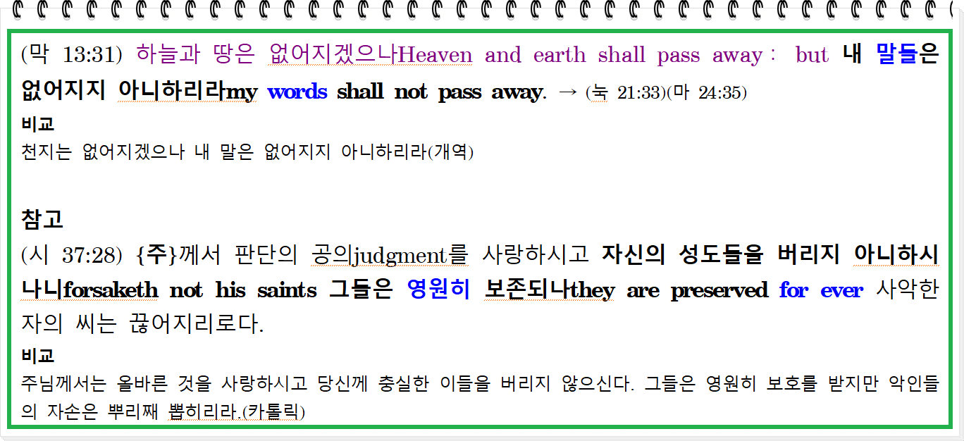 (마 24:35) 하늘과 땅은 없어지겠으나Heaven and earth shall pass away, but 내 말들은 없어지지 아니하리라my words shall not pass away.