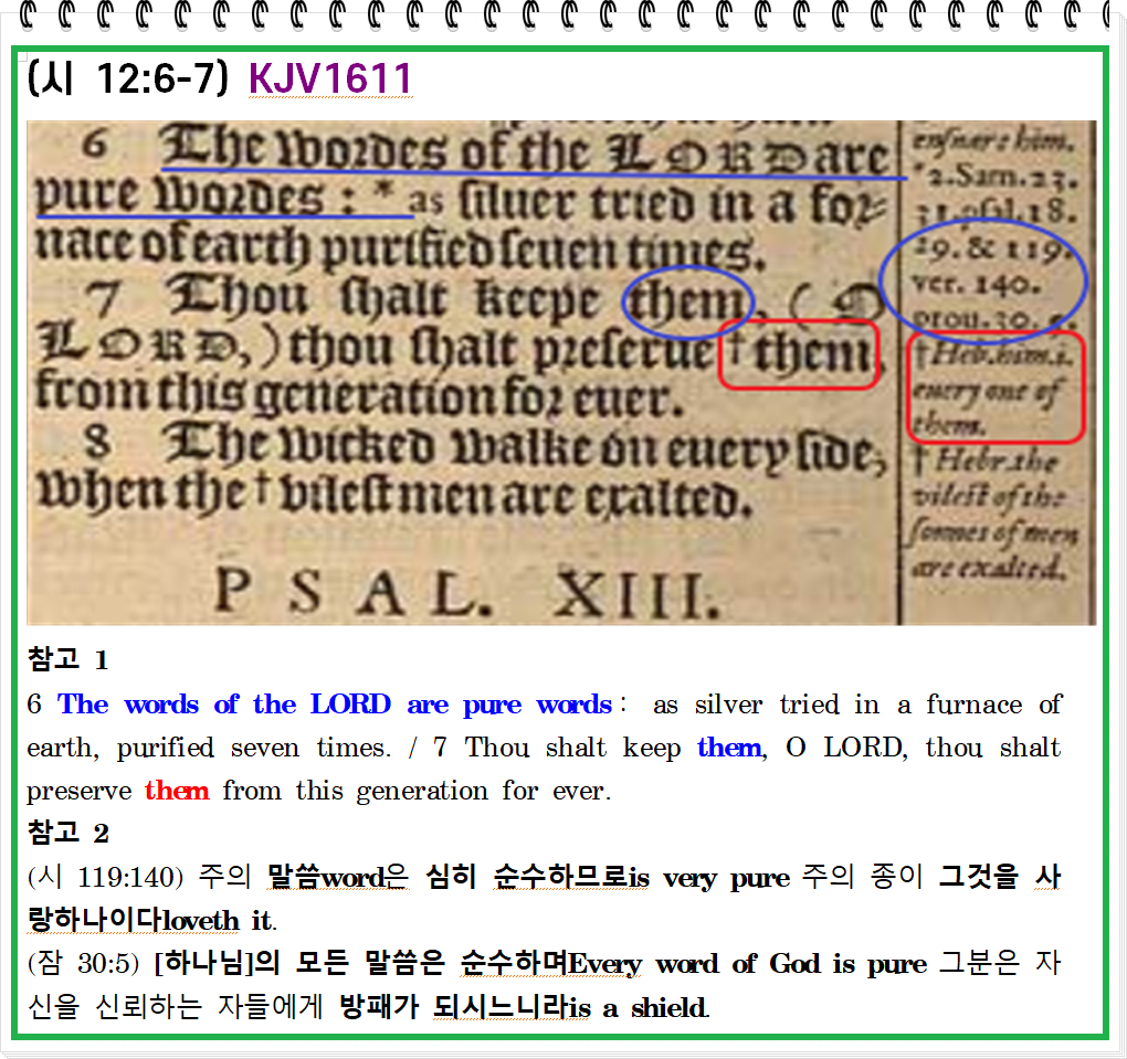 (시 12:6) {주}의 말씀들은 순수한 말씀들이니The words of the LORD are pure words 흙 도가니에서 정제하여 일곱 번 순수하게 만든 은 같도다.