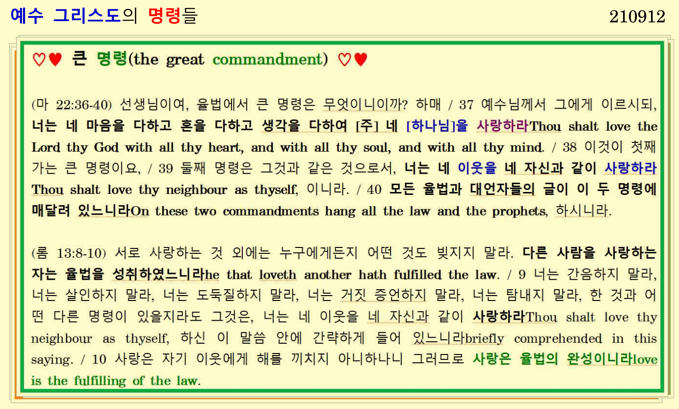 (마 28:20) 무엇이든지 내가 너희에게 명령한 모든 것을 그들에게 가르쳐 지키게 하라. 보라, 내가 세상의 끝까지 항상 너희와 함께 있느니라, 하시니라. 아멘.