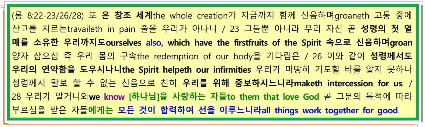 (롬 8:18) 내가 생각하건대 이 현 시대의 고난들은 앞으로 우리 안에 나타날 영광과 족히 비교될 수 없도다.