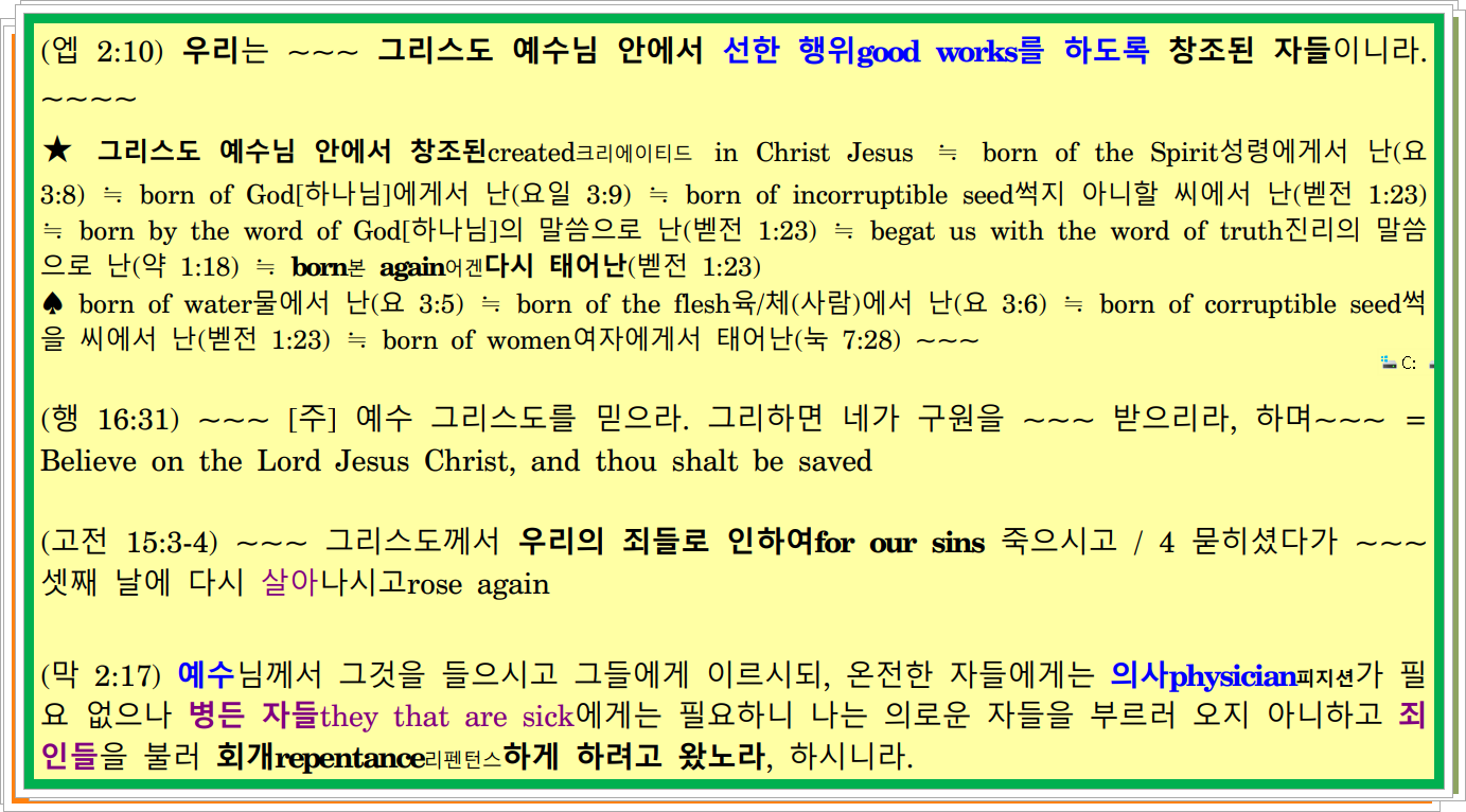 (벧전 1:1-2) 예수 그리스도의 사도 베드로는 본도와 갈라디아와 갑바도기아와 아시아와 비두니아에 두루 흩어진 나그네stranger들 / 2 곧 [하나님] [아버지]의 미리 아심에 따라 성령의 거룩히 구별하심을 통해 순종함과 예수 그리스도의 피 뿌림에 이르도록 선택 받은 자들Elect일렉트에게 편지하노니 은혜와 평강이 너희에게 더욱 많이 있기를 원하노라.