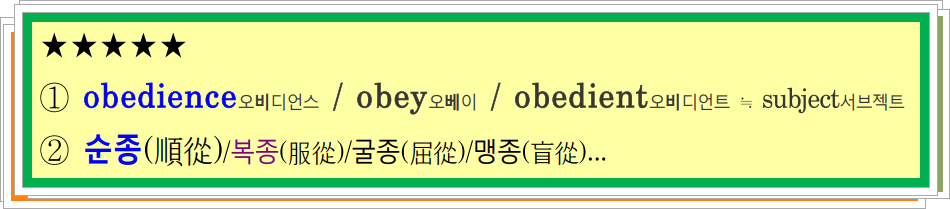 ★ obedient오비디언트 ≒ subject서브젝트