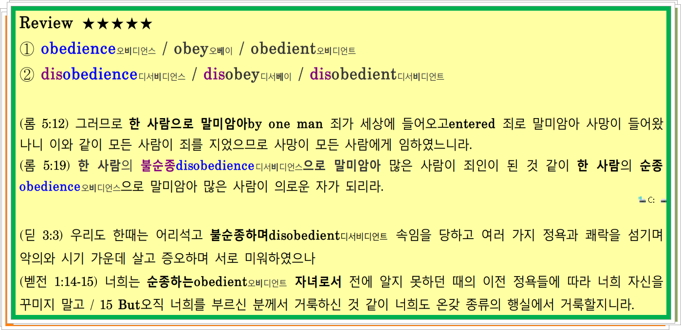 (삼상 15:22) 사무엘이 이르되, {주}께서 {주}의 음성에 순종하는obey오베이 것만큼 번제 헌물과 희생물을 크게 기뻐하시나이까? 보소서, 순종이 희생 헌물보다 낫고 귀를 기울이는hearken하컨 것이 숫양의 기름보다 나으니