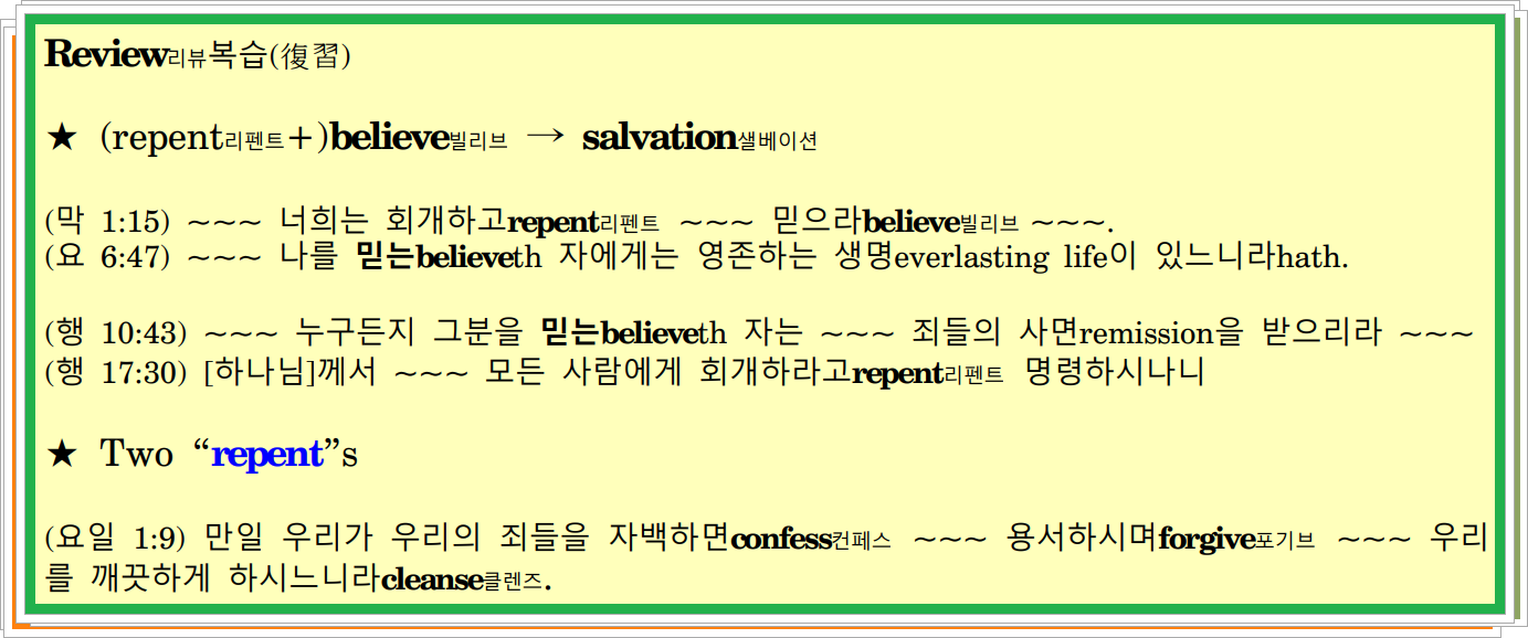 (벧전 1:23) 너희가 다시 태어난 것Being born again은 ~~~ [하나님]의 말씀the word of God으로 된 것이니라.