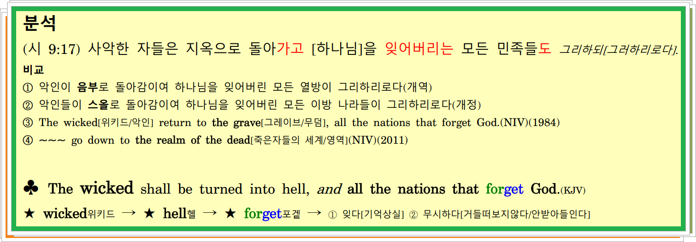 (막 9:44/46/48) 거기서는 그들의 벌레도 죽지 아니하고 불도 꺼지지 아니하느니라.