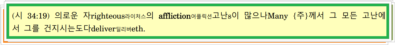 (롬 5:3-4) 그리할 뿐 아니라 우리가 환난도 기뻐하나니 환난tribulation트리뷸레이션은 인내를, / 4 인내는 체험을, 체험은 소망을 이루는 줄 우리가 아노라.