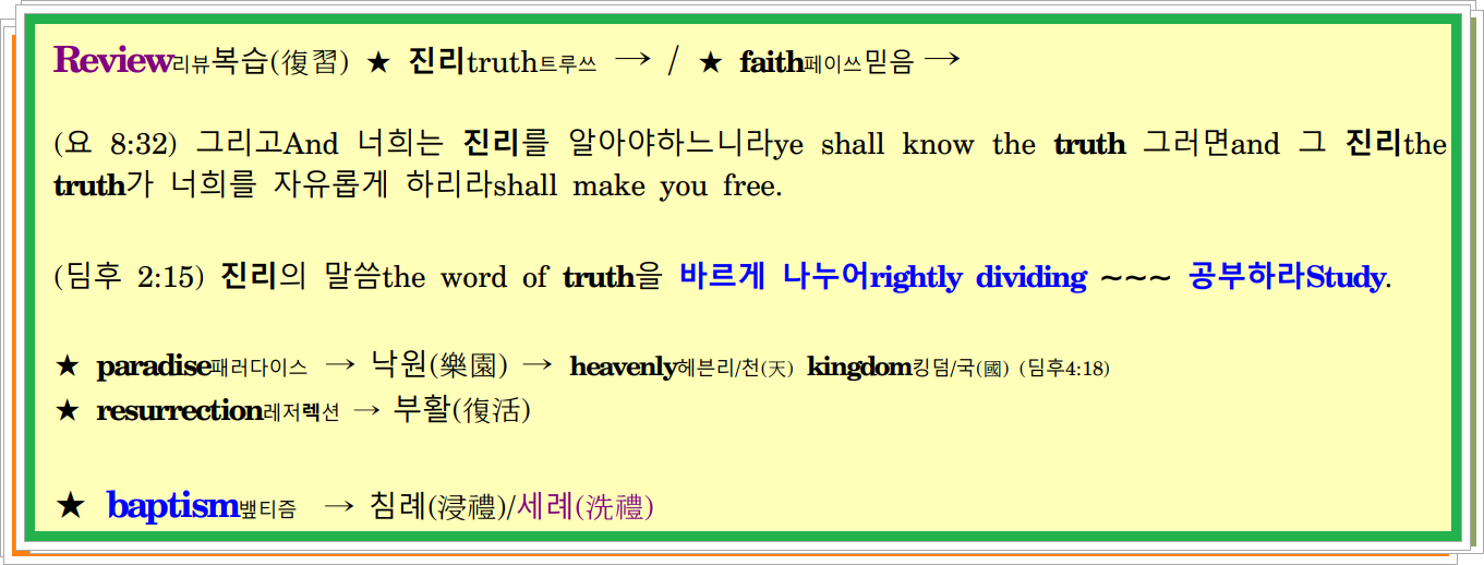 ★ John's baptism뱊티즘 → the baptism뱊티즘 of repentance리펜턴스 → 요한의 침례/회개의 침례