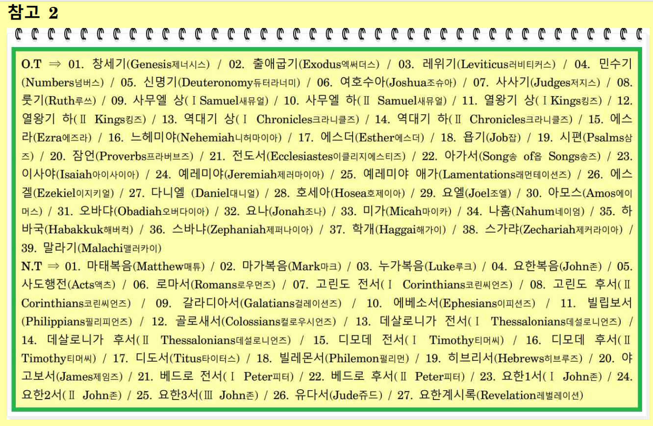 (히 5:11-14) ~~~ 우리에게는 말해야 할 것들이 많이 있도다we have many things to say 그런데and 너희가 듣기에 둔하므로seeing ye are dull of hearing 말하는게 어렵도다hard to be uttered. / 12 이는For 시간으로 보면for the time 너희가 마땅히 가르치는자들이 되어야 할 때인데when ye ought to be teachers 너희ye는 누군가가 하나님 말씀들의 처음 원리들을 다시 가르칠 필요를 가지고 있고have need that one teach you again which be the first principles of the oracles of God; and 단단한 음식이 아니라 젖을 필요로 하는 그런 자들이 되어 있기are become such as have need of milk, and not of strong meat 때문이라. / 13 이는For 젖을 사용하는 자마다every one that useth milk 그가 아기이기때문에for he is a babe 의의 말씀에 능숙치 못하기is unskilful in the word of righteousness 때문이라. / 14 오직But 단단한 음식strong meat은 장성한 자들them that are of full age 곧even 사용함으로by reason of use 선과 악을 분별할 만큼 자기들의 감각이 단련된 자들those who have their senses exercised to discern both good and evil에 속하느니라belongeth to.