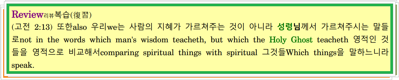 (고후 1:21-22) ~~~ 우리를 너희와 함께 그리스도 안에서 세우시고which stablisheth us with you in Christ, and 우리에게 기름 부으신hath anointed us 그he분은 하나님이시니라is God / 22 그Who분께서는 또한also 우리를 봉인하셨고hath sealed us, and 우리 마음속에in our hearts 성령님이란 보증the earnest of the Spirit을 주셨느니라given.
