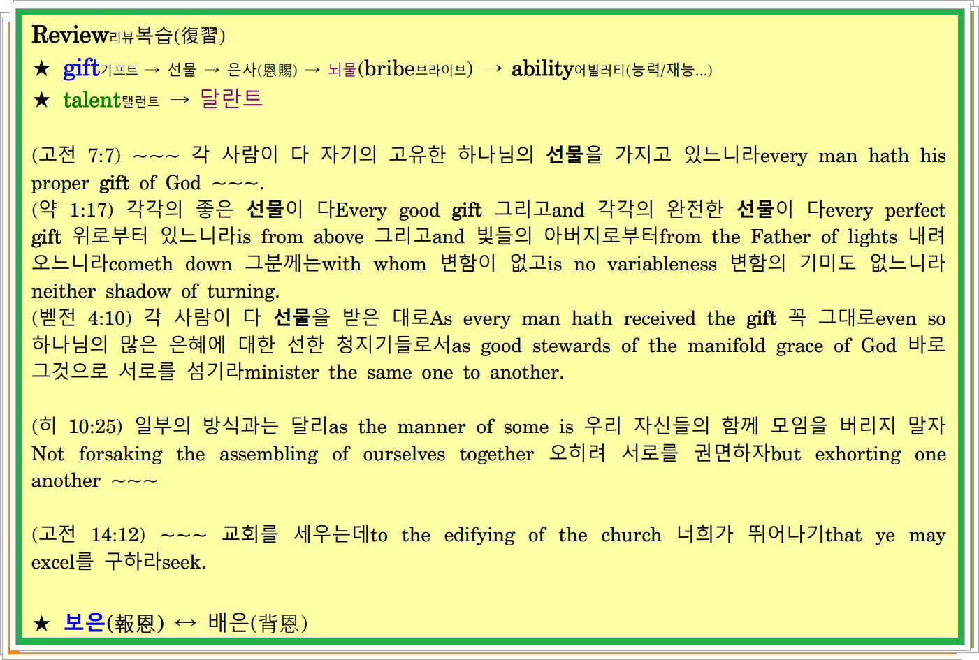 (살전4:7) 이는 하나님God께서 우리us를 부정함으로가 아니라 거룩함으로not unto uncleanness언클린니스, but unto holiness호울리니스 부르셨기 때문이니라hath called.