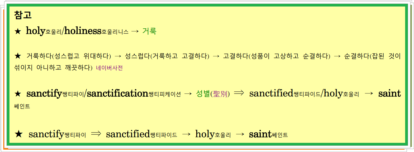 (살전 4:3) 이것this 곧even 너희의 성별your sanctification쌩티피케이션이 하나님의 뜻the will of God이니 ~~~