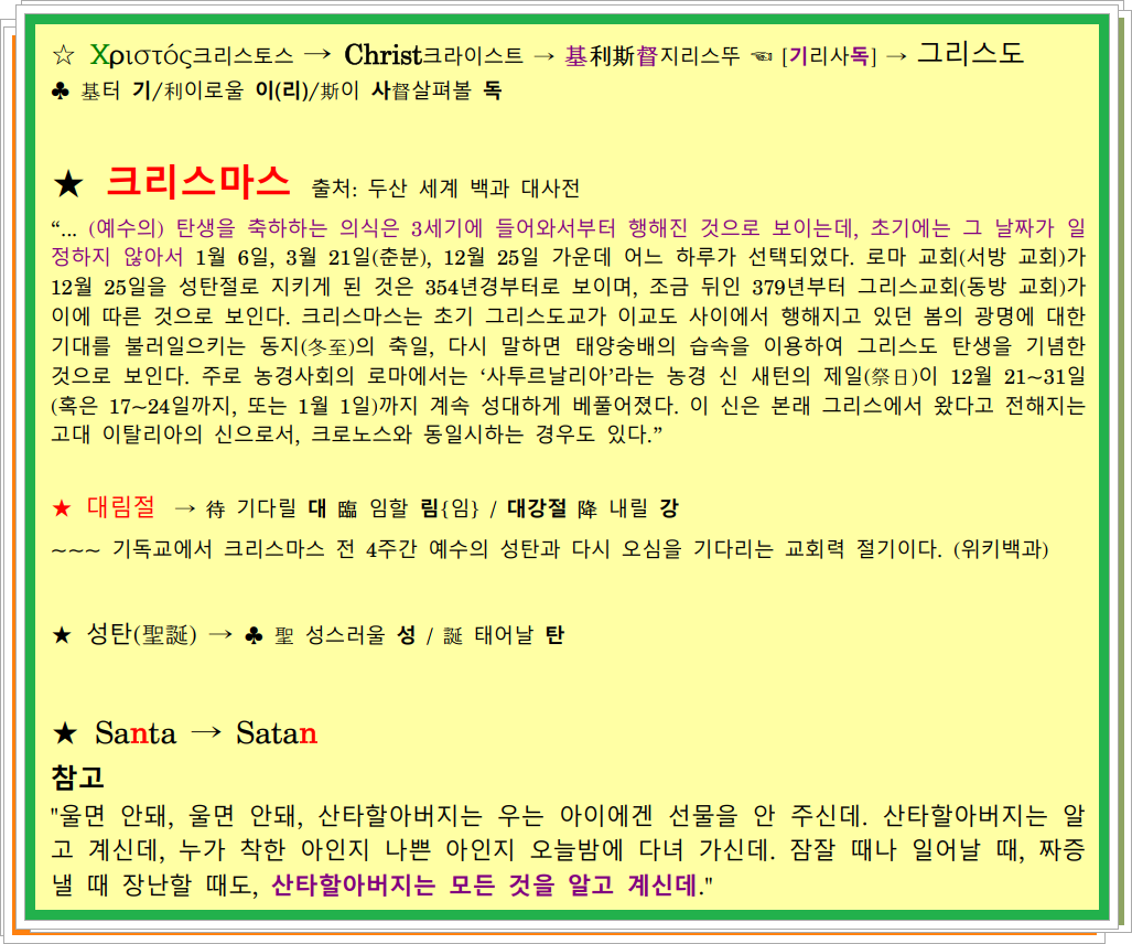☆ Χριστός크리스토스 → Christ크라이스트 → 基利斯督지리스뚜 ☜ [기리사독] → 그리스도