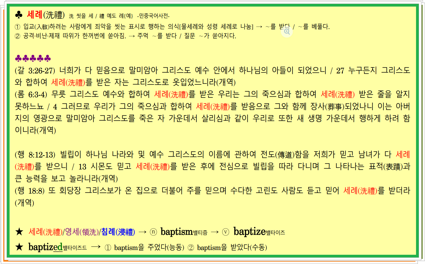 ★ baptize뱊타이즈 ⇒ ♣ dip딮/immerse이머스 → who? whom? where?