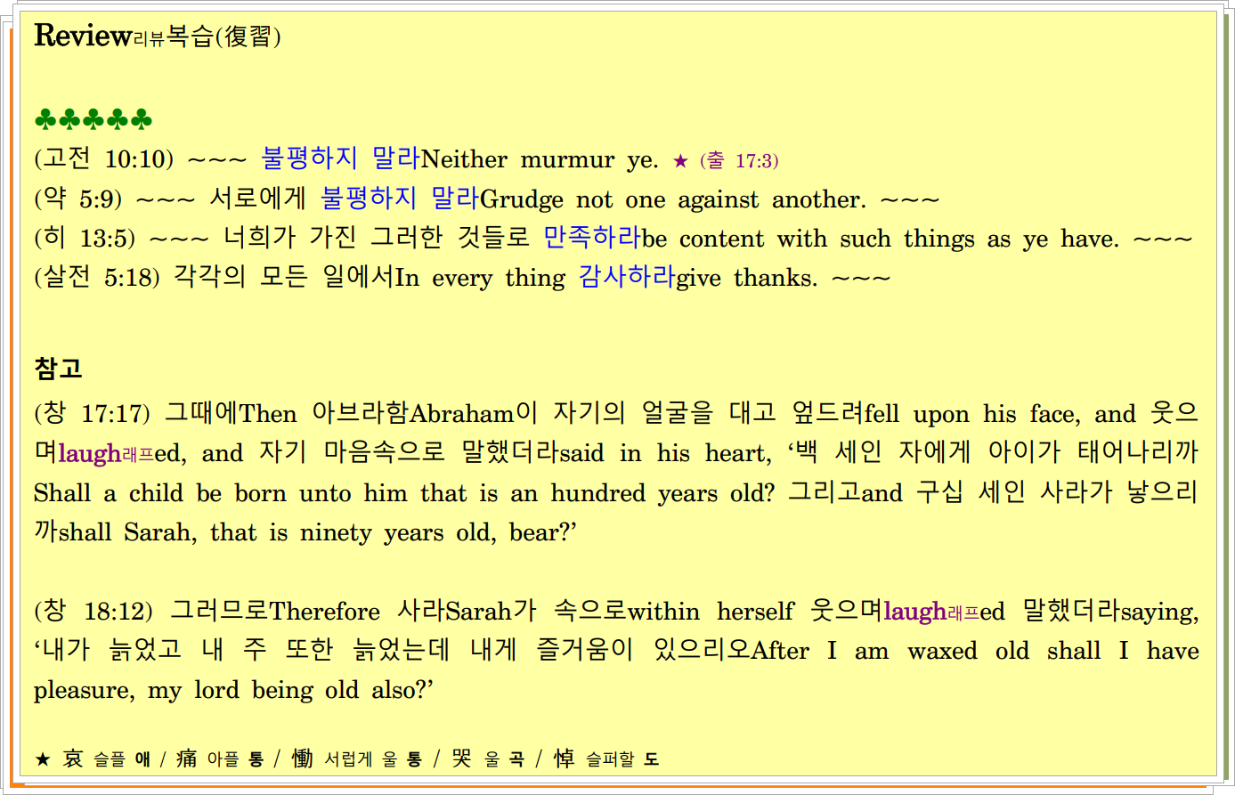 (말 2:13) 그리고And 너희ye는 눈물로with tears 울음으로with weeping 그리고 부르짖음으로and with crying out 주의 제단the altar of the LORD을 덮으면서covering 다시again 이런 일을 행하여 왔도다this have done. 그러므로insomuch that 그he분께서는 더 이상 그 헌물을 중시하지 아니하시고regardeth not the offering any more, or 그것을 너희 손에서 선한 뜻으로 받지도 아니하시는도다receiveth it with good will at your hand. ★ weep위이프 / cry크라이 // tears ⓝ티어즈