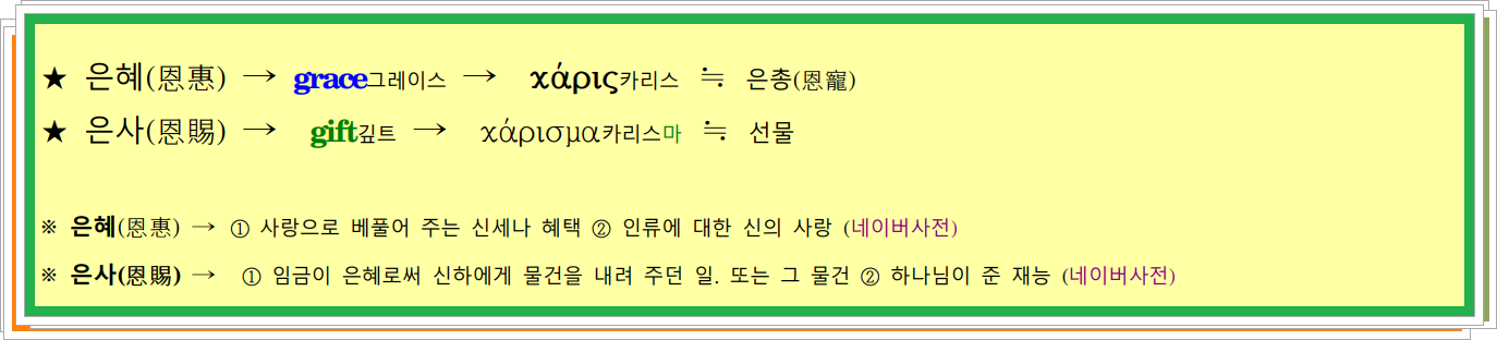 ★ 은사(恩賜) → gift깊트 → χάρισμα카리스마 ≒ 선물