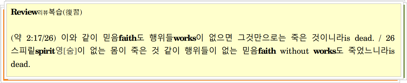 (요일 3:18) 나의 어린 자녀들My little children아, 우리가 말로 또는 혀로가 아니라 행함으로 그리고 진실함으로 사랑하자let us not love in word, neither in tongue; but in deed and in truth.